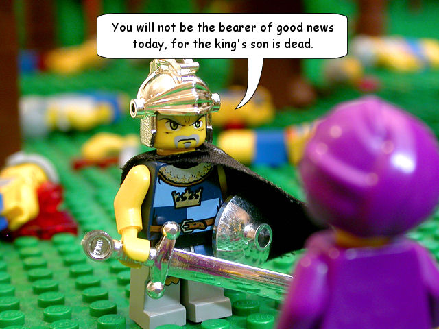 On the lighter side of things how about we turn to the Brick Testament for there version of Absalom’s death. Be sure to use the arrows at the top of their page to navigate the rest of the story.