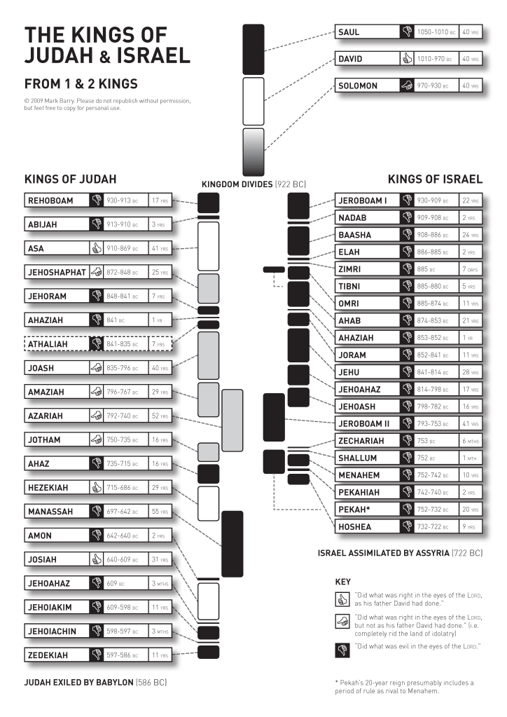 And while you are traveling down memory lane, I wanted to share with you a great diagram that I recently found on Visualunit.me which charted the kings of Israel and Judah. Mark’s diagram is a great visual understanding of how good and bad the kings really were. Check it out:
