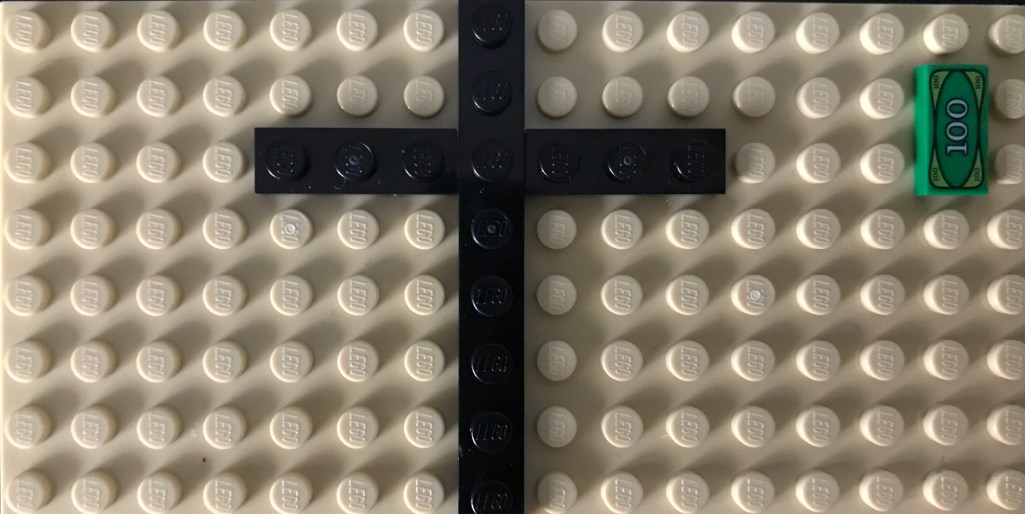As we journey through our LEGO Lent, we recall God’s obedience to the cross by adding one small brick to our story broad. LEGO money . . . as a reminder of Judas’ betrayal and the 30 silver coins offered to Judas by the Pharisees.